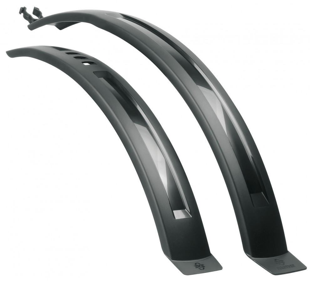 Оновлені болотники пластмасові для коліс 26-28" з шириною шини до 54 мм. Вага 195г, довжина 700мм та 560 мм. Матові чорні.
