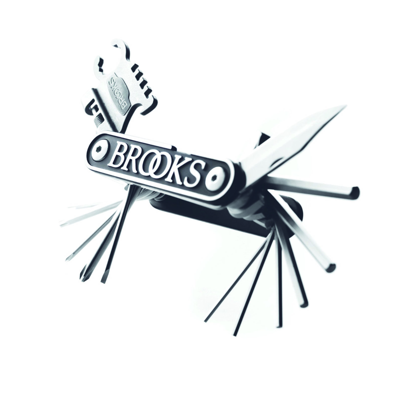 Більше 700 членів спільноти Брукс працювали над створенням цього універсального інструменту для велоподорожей. Цей практичний набір включає широкий асортимент із 21 інструмента та стильний шкіряний чохол.