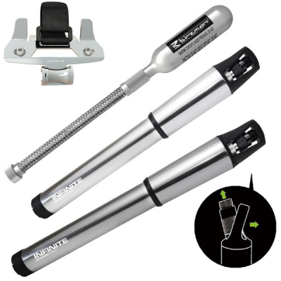 Birzman Infinite совместим с картриджами CO2, использование которых значительно ускоряет обслуживание бескамерных колес, а технология Snap-It позволяет быстро переключаться между автомобильным и Presta ниппелями. В комплект также входит крепление к раме велосипеда.