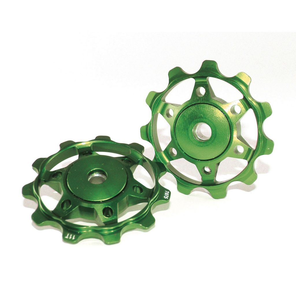 Алюминиевые зелёные ролики для заднего переключателя на пром.подшипниках.