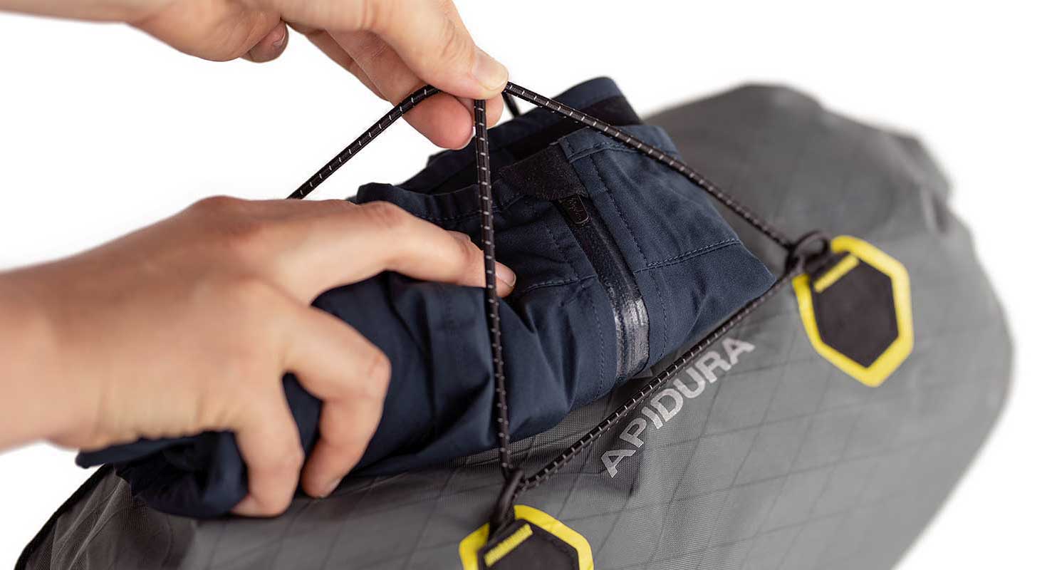 Водонепроницаемая компрессионная сумка на руль APIDURA Backcountry Handlebar Pack, для легких, объемных вещей. Доступна в двух размерах: 9 и 20L.