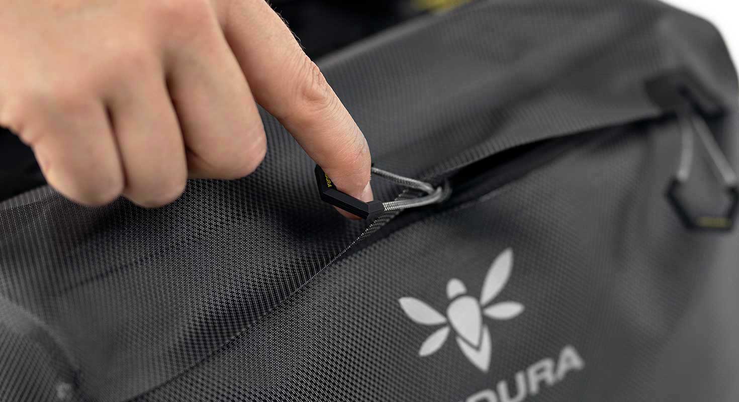 Для изготовления сумок серии Expedition используется трехслойный ламинированный материал, разработанный специально для Apidura. Материал легкий и имеет высокую устойчивость к разрывам и истиранию. Обратите внимание, что швы сумки сварные - это обеспечивает полную гидроизоляцию. Места крепления усилены материалом Hypalon - прорезиненным нейлоном, который используется для дополнительной защиты от трения и повреждений. В качестве креплений используются надежные пряжки Woojin.