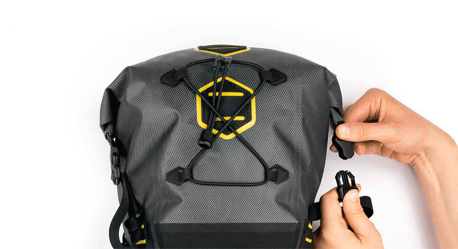 Для изготовления сумок серии Expedition используется трехслойный ламинированный материал, разработанный специально для Apidura. Материал легкий и имеет высокую устойчивость к разрывам и истиранию. Обратите внимание, что швы сумки сварные - это обеспечивает полную гидроизоляцию. Места крепления усилены материалом Hypalon - прорезиненным нейлоном, который используется для дополнительной защиты от трения и повреждений. В качестве креплений надежные пряжки Woojin.