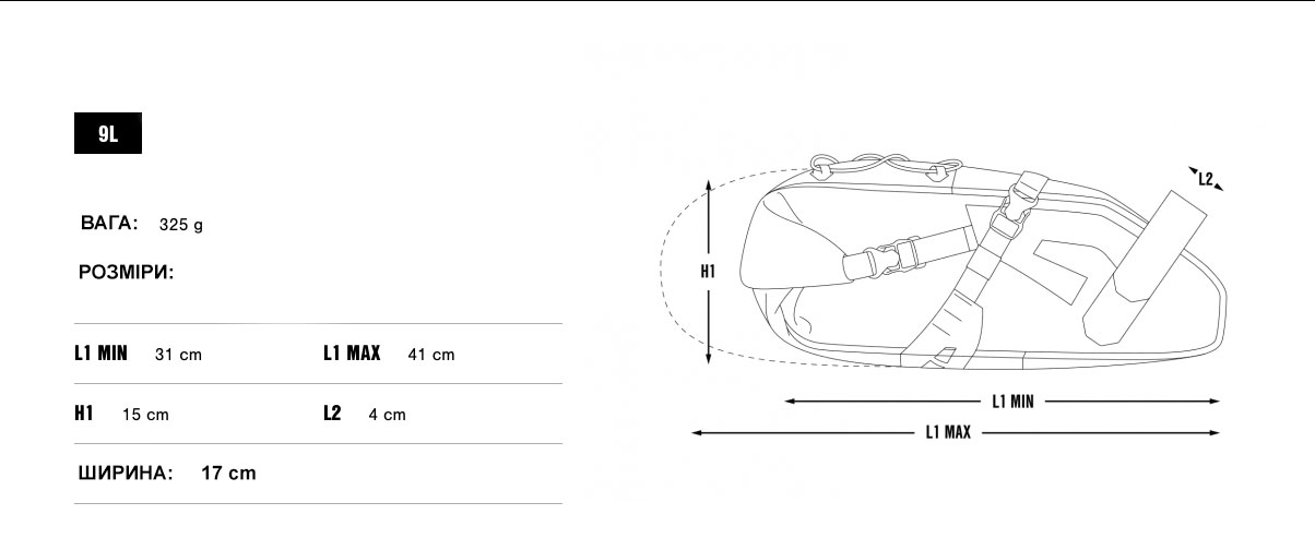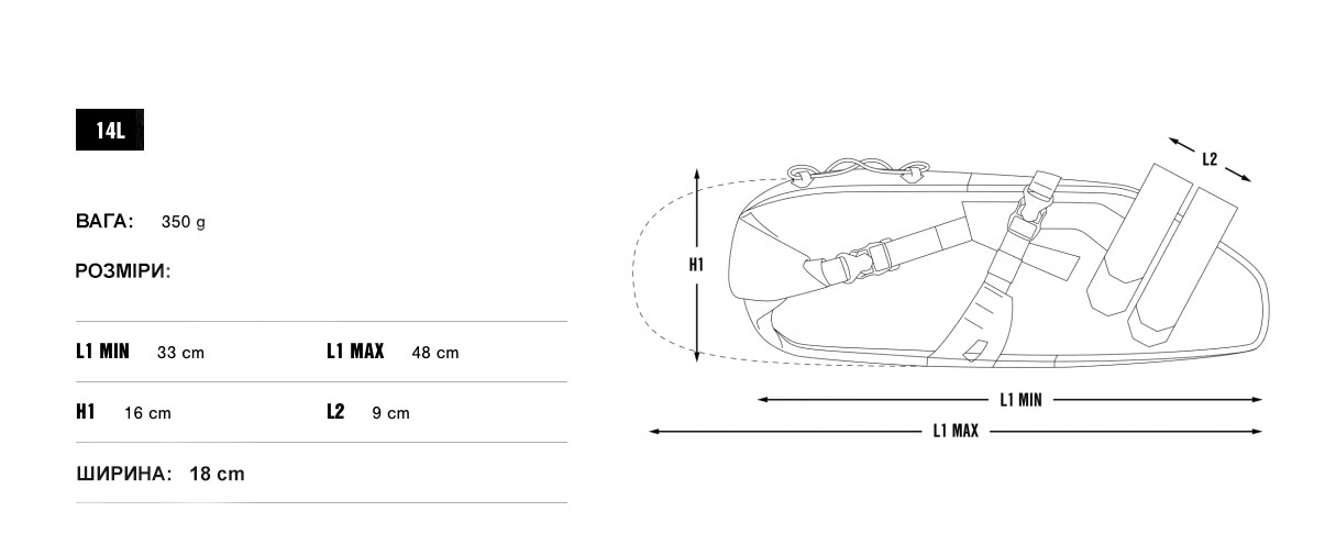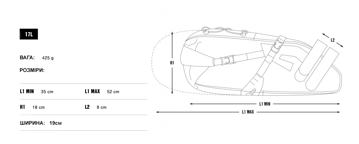 Ультралегкая, водонепроницаемая подседельная сумка Apidura Expedition Saddle Pack позволяет транспортировать достаточно много вещей, не используя задний багажник. Сумка предназначена для хранения и перевозки одежды и экипировки в дальних поездках. Трехточечное крепление надежно крепит сумку, не позволяя ей раскачиваться во время движения и не повреждая лакокрасочное покрытие. Система застёжек ролл-топ позволяет изменить размер сумки в зависимости от объёма содержимого. Снаружи расположено крепление для небольшого фонаря. Светоотражающие элементы сделают велосипедиста более заметным для автомобилей в тёмное время суток. Доступна в 3-х разных размерах 9L, 14L, 17L